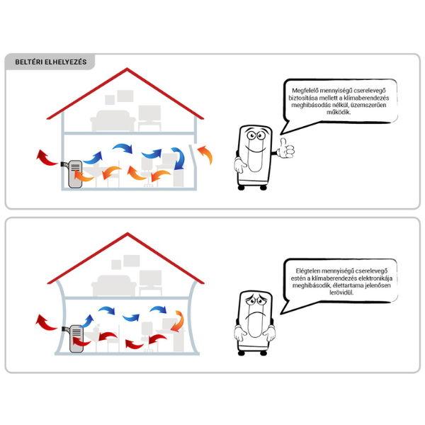 Ha a mobil klímát egycsöves kivitelben -ahogy alapvetően kapható - a hűtendő helyiségben kívánja elhelyezni, a csövön a működés közben termelődő meleg levegőt szükséges kivezetni a szabadba.